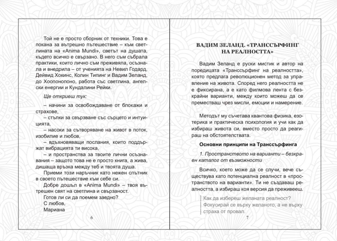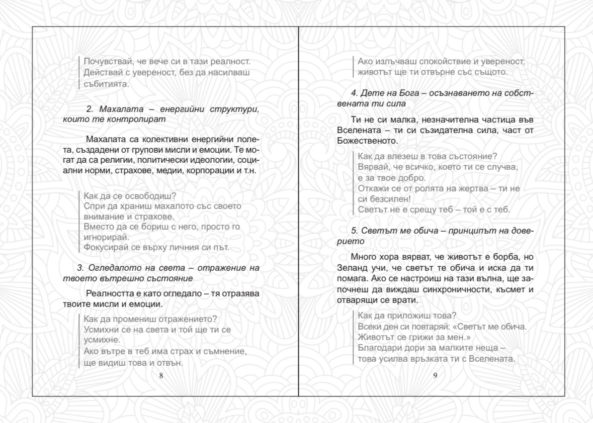 Всички тези учения се преплетоха с моя личен опит и доведоха до създаването на този наръчник – една покана за вътрешно пътешествие, в което всеки може да открие своята светлина.