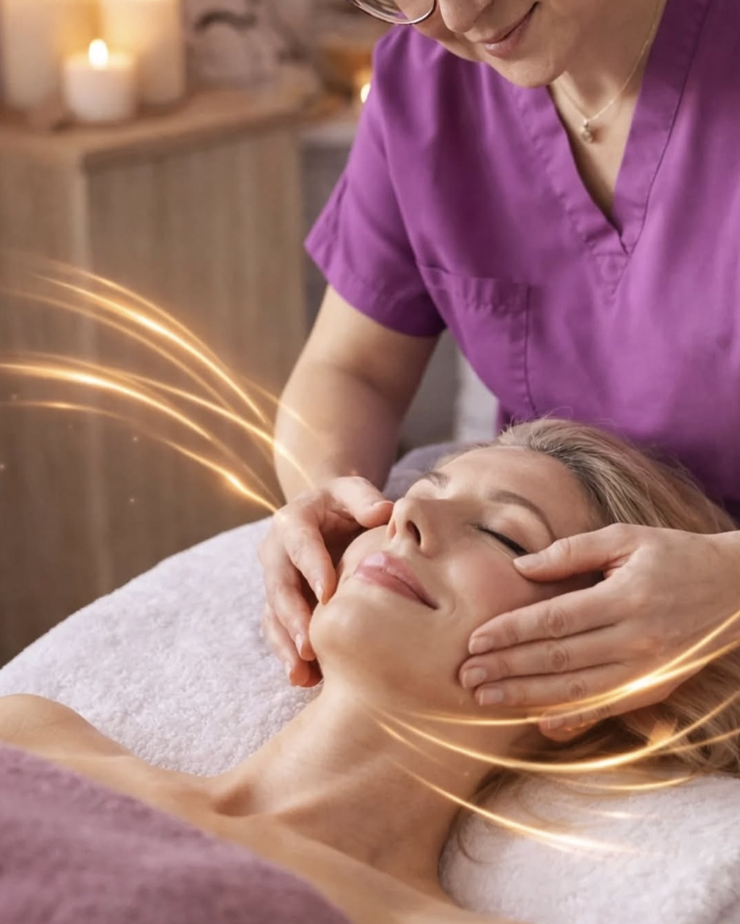 «Реджуванс» е холистична мануална терапия за лице, шия, врат и деколте, която възстановява естествената жизненост на кожата и мускулите чрез фини, прецизни и методични движения на терапевта. Това не е просто масаж — това е специално разработена техника, която работи с физиологията на тялото, без използване на кремове, серуми, масла, уреди или инжекции.
